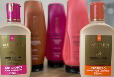 A linha Aneethun é recomendada por tricologista para auxiliar no controle de queda capilar e fortalecimento dos fios. Age em conjunto com protocolos de terapia capilar, potencializando resultados clínicos. Indicada para todos os tipos de cabelo, especialmente os que necessitam reconstrução, brilho e resistência. Produtos seguros, eficazes e testados profissionalmente para quem deseja resultados reais e confiáveis.