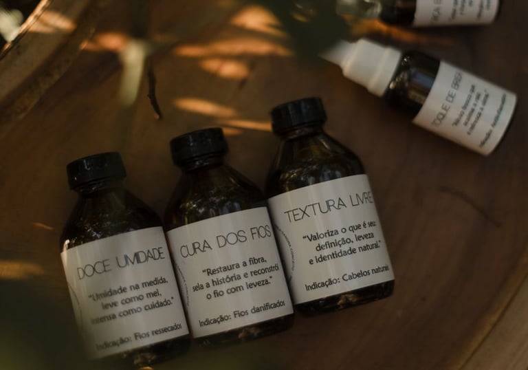 Produtos de terapia capilar e beleza em queimados