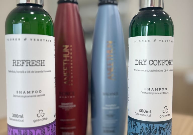 A linha Grandha oferece soluções técnicas para fortalecimento do couro cabeludo e tratamento da queda capilar. Recomendada por tricologista, trabalha em sinergia com protocolos de terapia capilar. Os produtos ajudam a redensificar fios, melhorar textura e recuperar vitalidade. Excelente para quem passa por processos químicos, queda ou afinamento capilar.